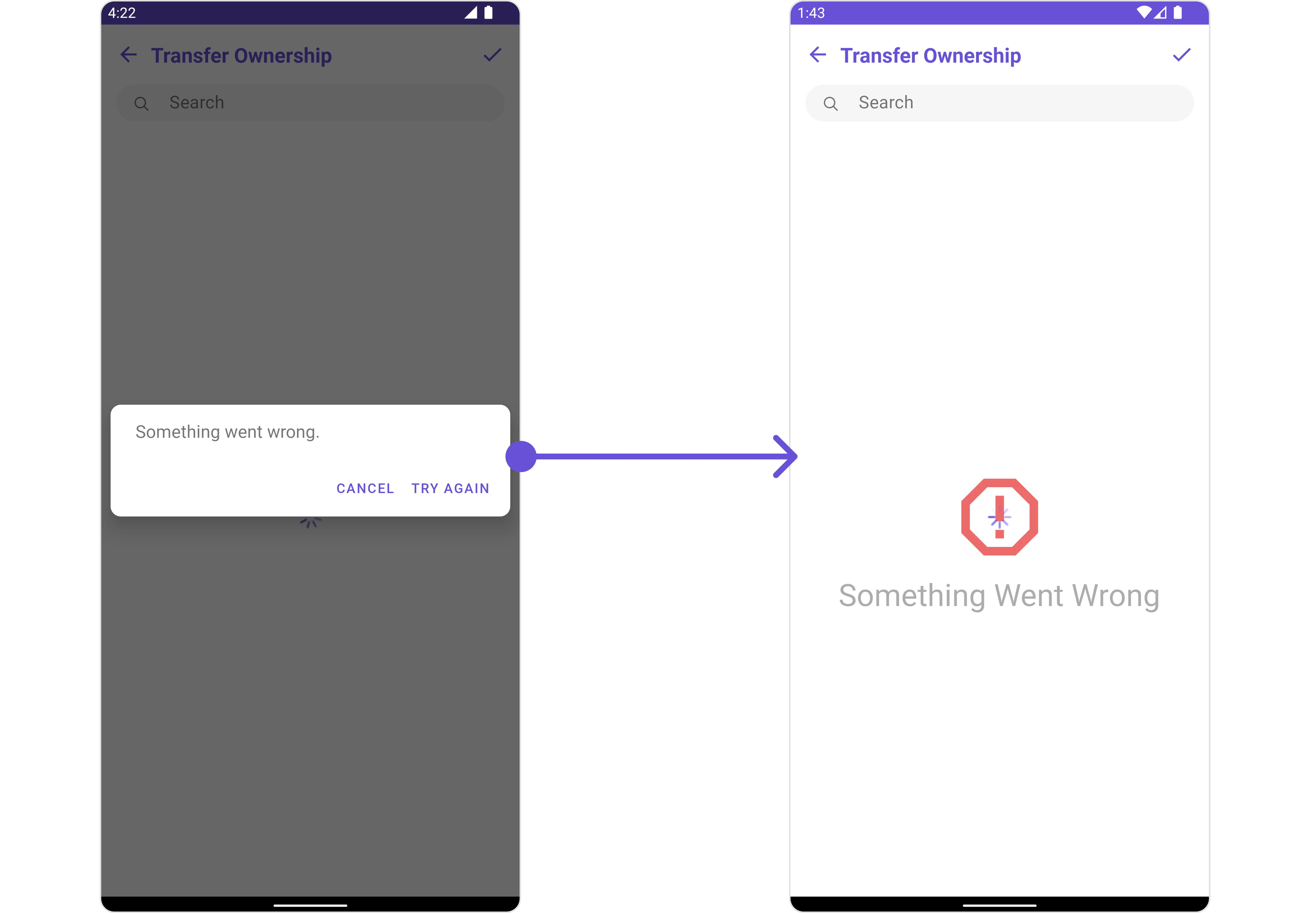 To fit your app’s design requirements, you can customize the appearance of the Transfer Ownership component. We provide exposed methods that allow you to modify the experience and behavior according to your specific needs.Style